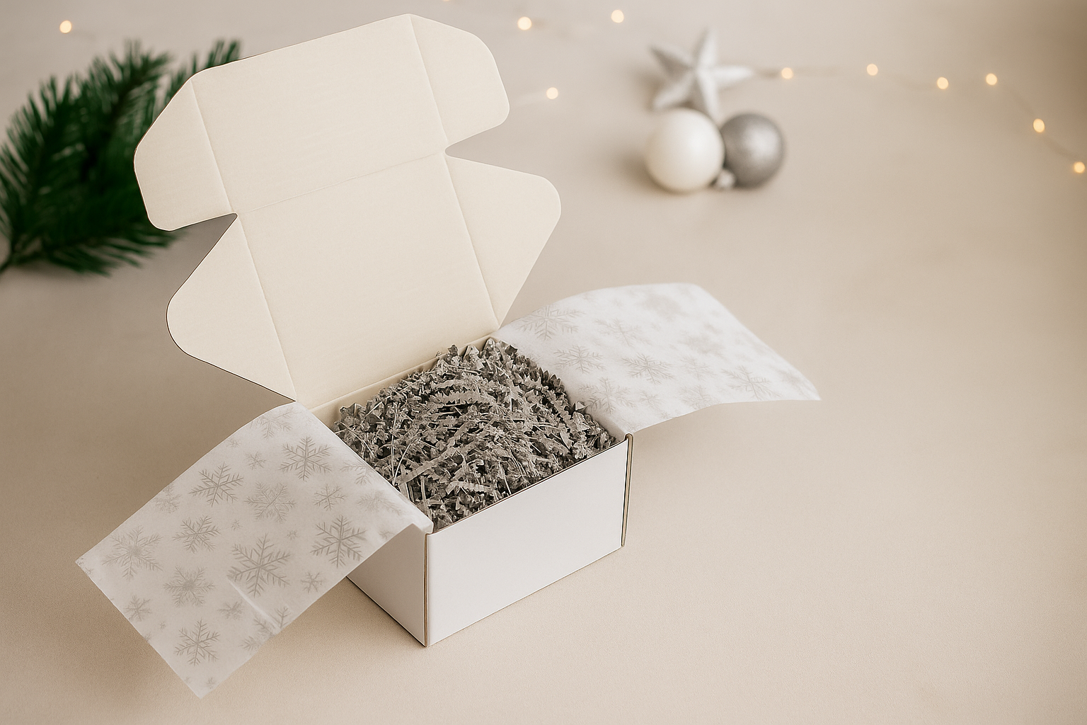- Wrapped in premium silver snowflake tissue paper